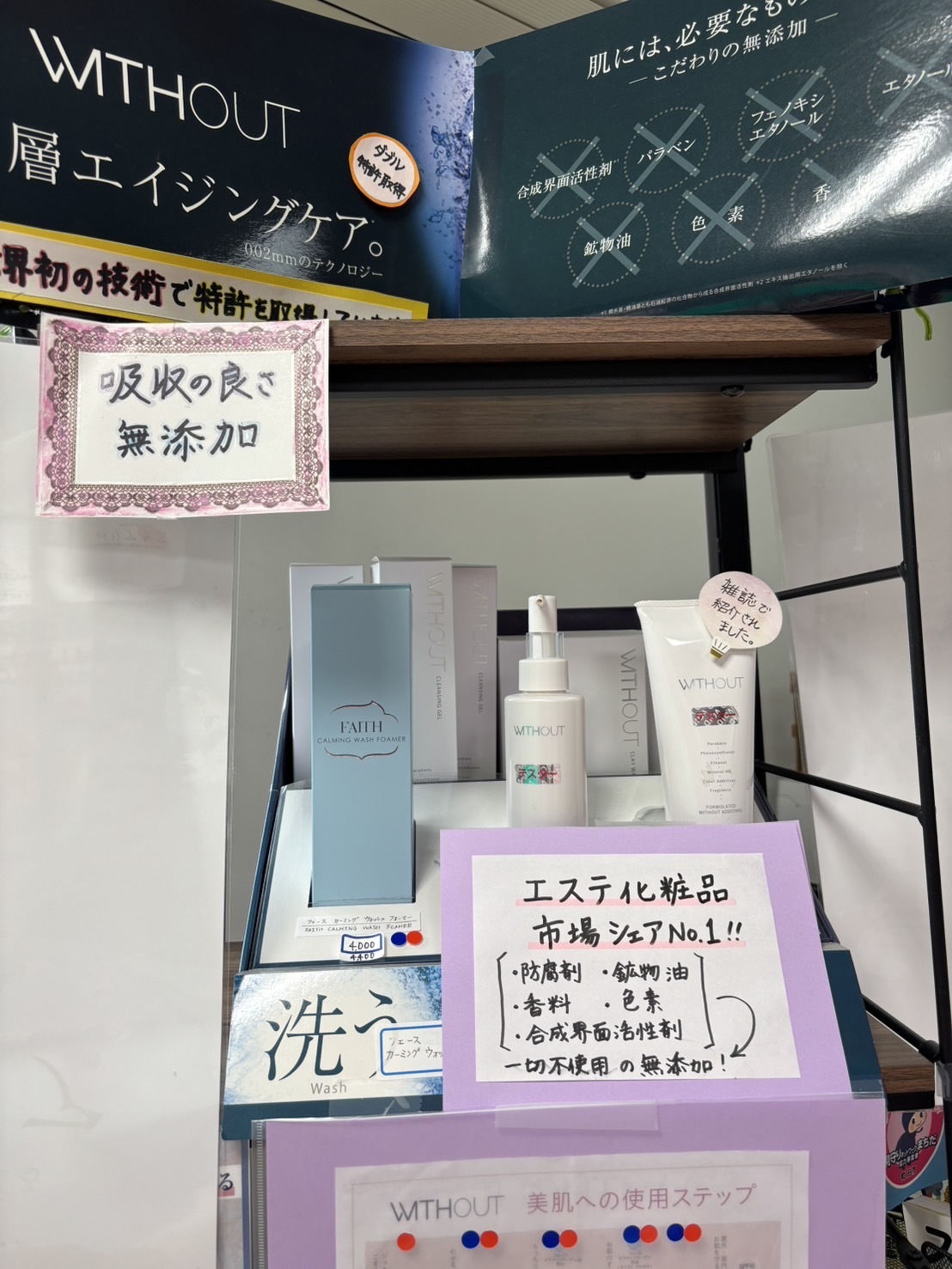 肌に優しい化粧品、入浴剤なども取り扱っています。